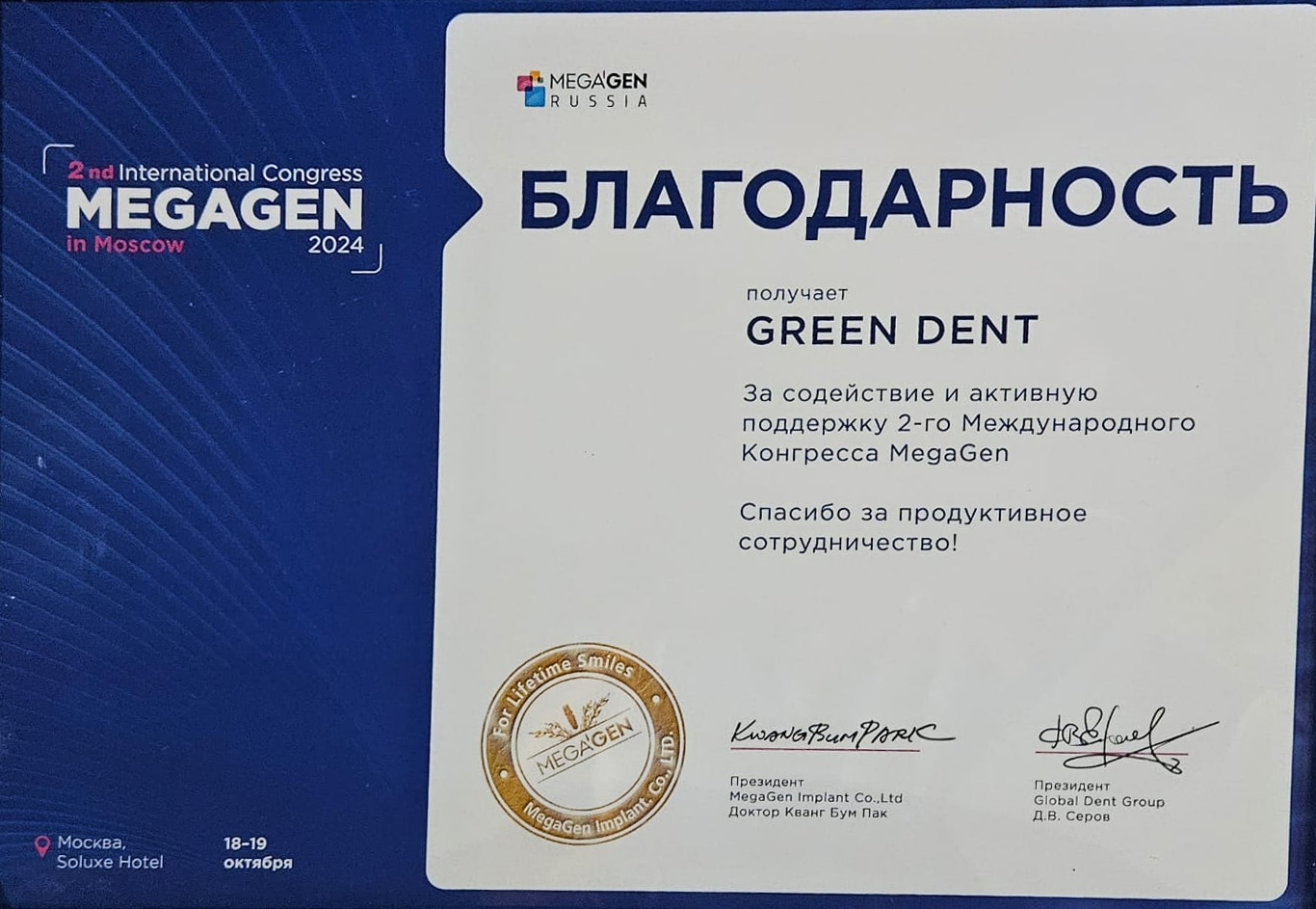Компания MVK настоящим удостоверяет, что компания GREEN DENT